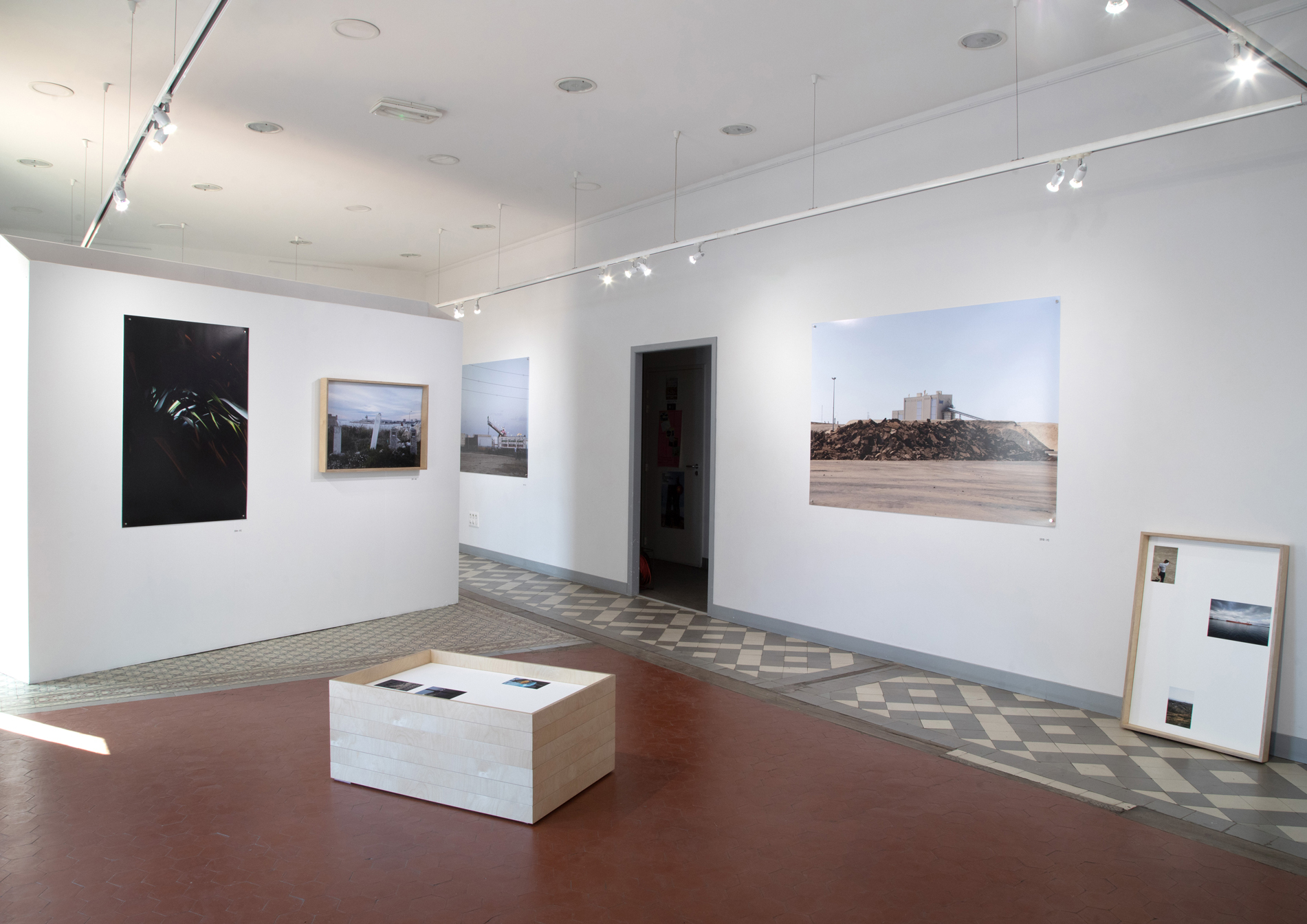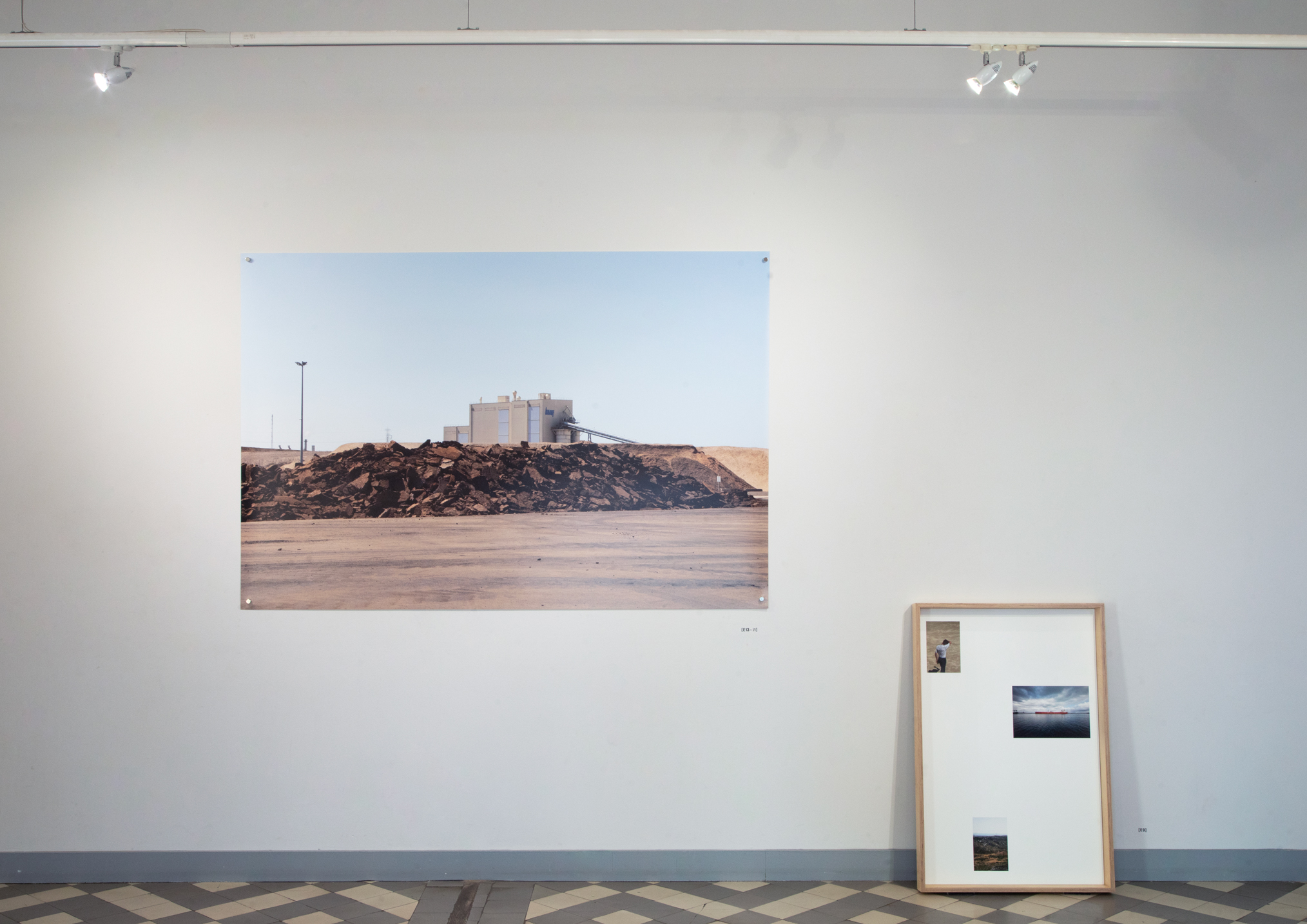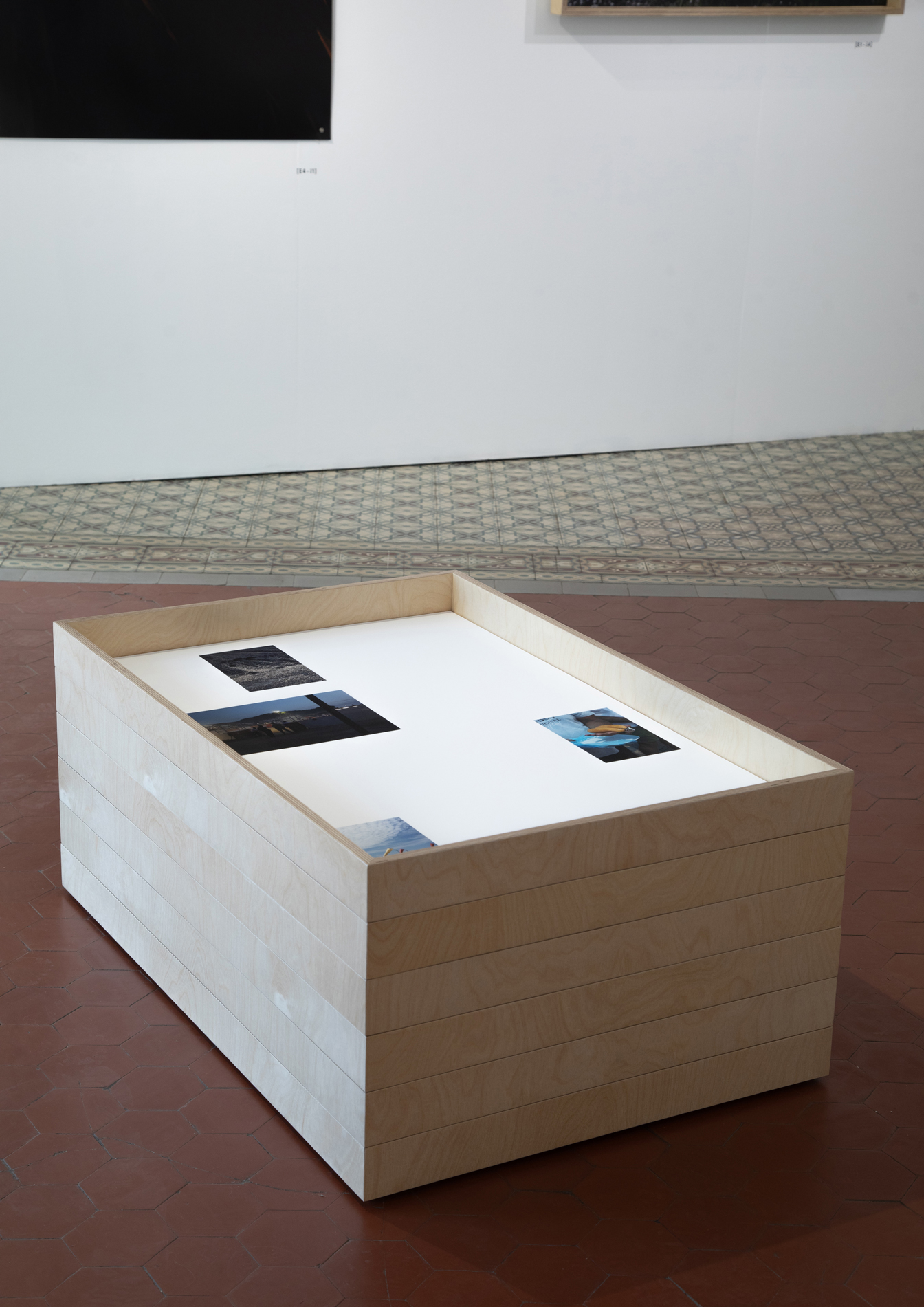 Dans l’espace de celle-ci, un dispositif a été conçu pour présenter cette sélection. Modulables, ces cadres encastrables offrent au regard du visiteur une partie des ensembles, dont le reste demeure caché sous les piles. Illustrant le processus de travail de ce projet, où la notion d’archive est omniprésente, ce dispositif évoque également la géographie stratiforme et polymorphe du golfe de Fos-sur-Mer. Installé dans l’espace, il se confronte à certaines images mises en exergue, pour permettre une polydialectique entre les photographies à laquelle le spectateur prend une part active.