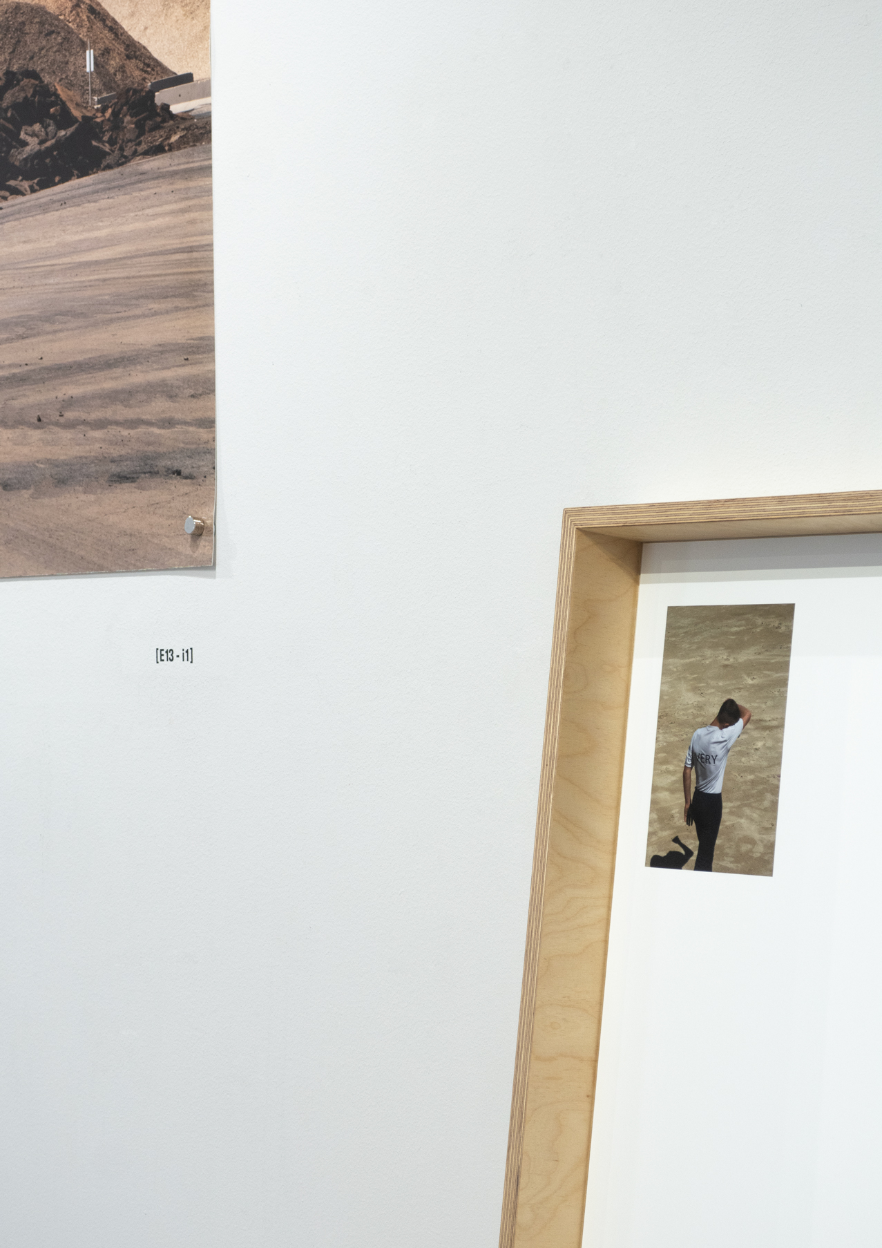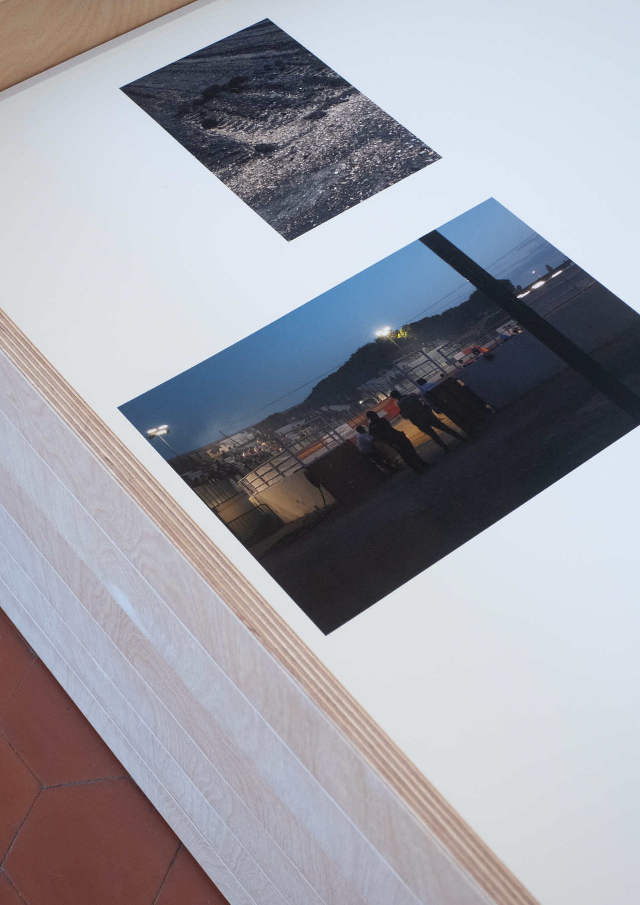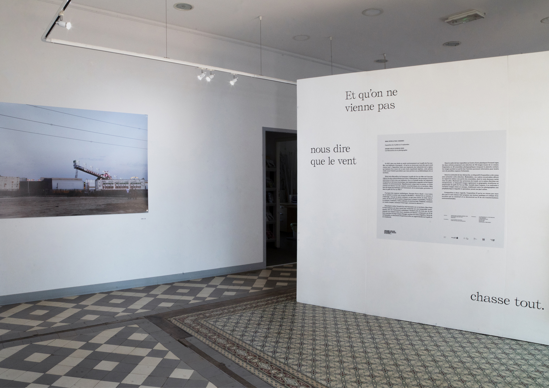 Dans l’espace de celle-ci, un dispositif a été conçu pour présenter cette sélection. Modulables, ces cadres encastrables offrent au regard du visiteur une partie des ensembles, dont le reste demeure caché sous les piles. Illustrant le processus de travail de ce projet, où la notion d’archive est omniprésente, ce dispositif évoque également la géographie stratiforme et polymorphe du golfe de Fos-sur-Mer. Installé dans l’espace, il se confronte à certaines images mises en exergue, pour permettre une polydialectique entre les photographies à laquelle le spectateur prend une part active.